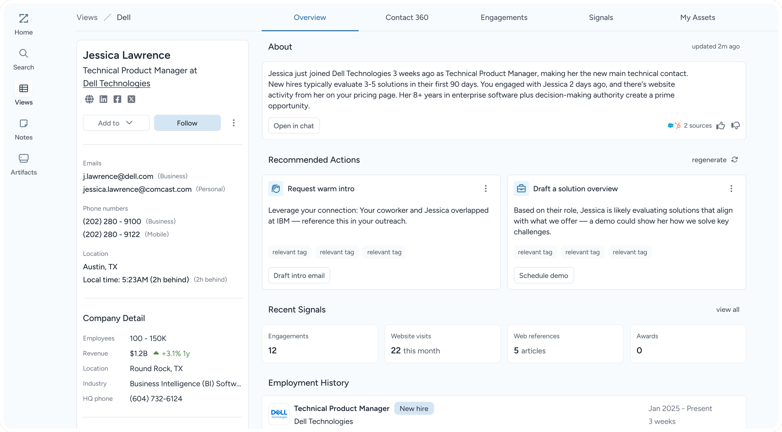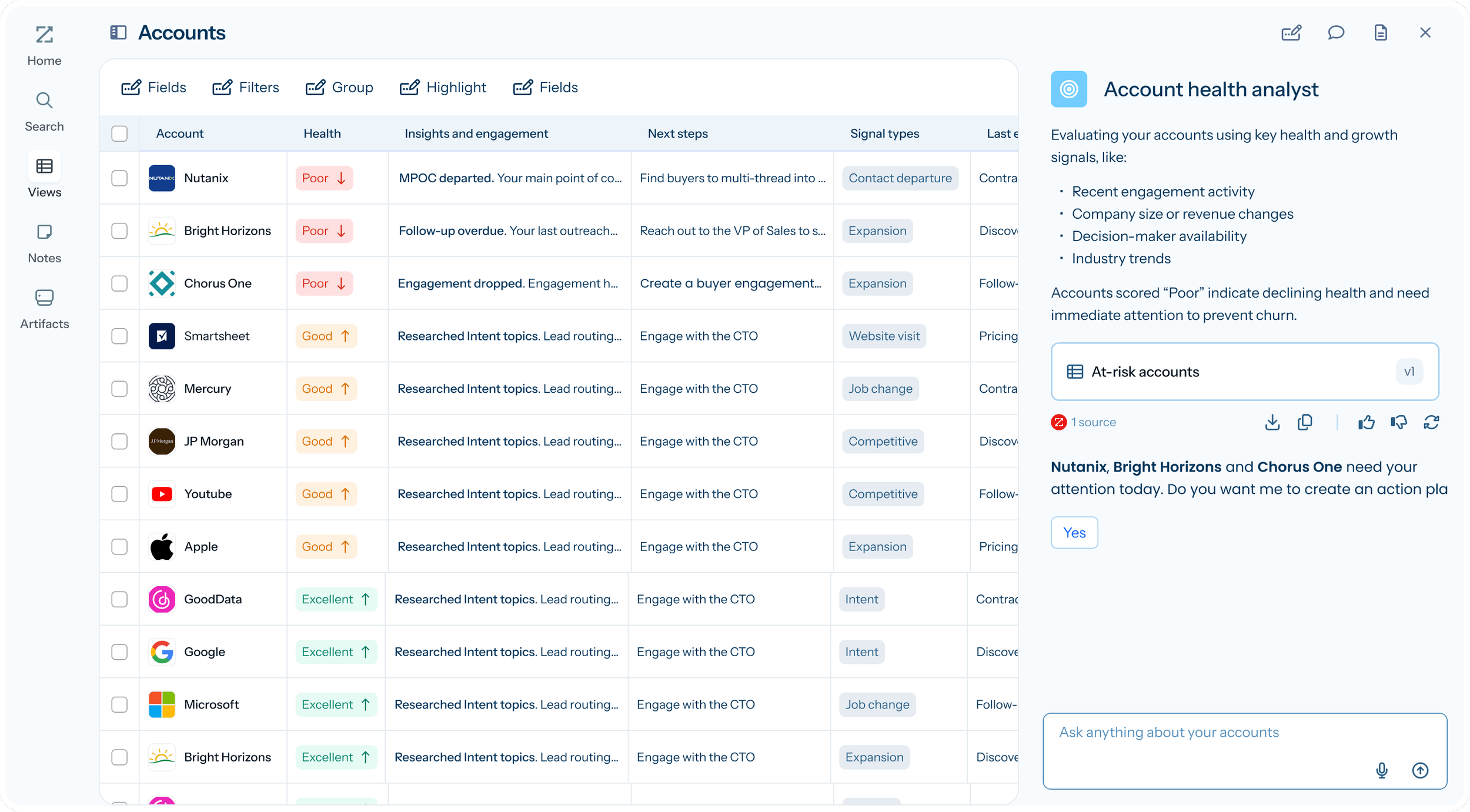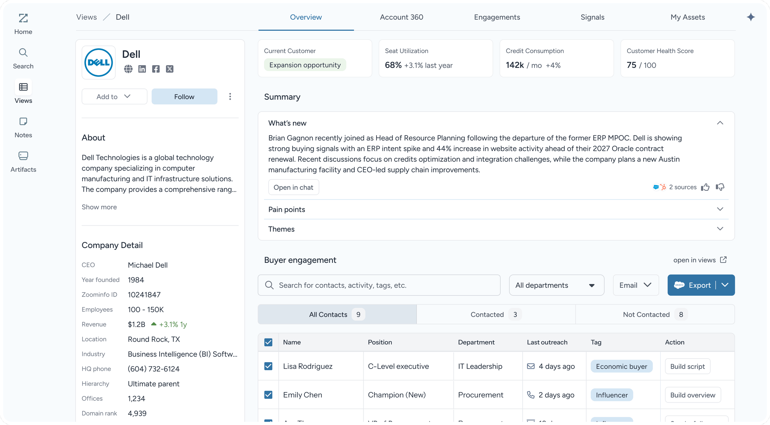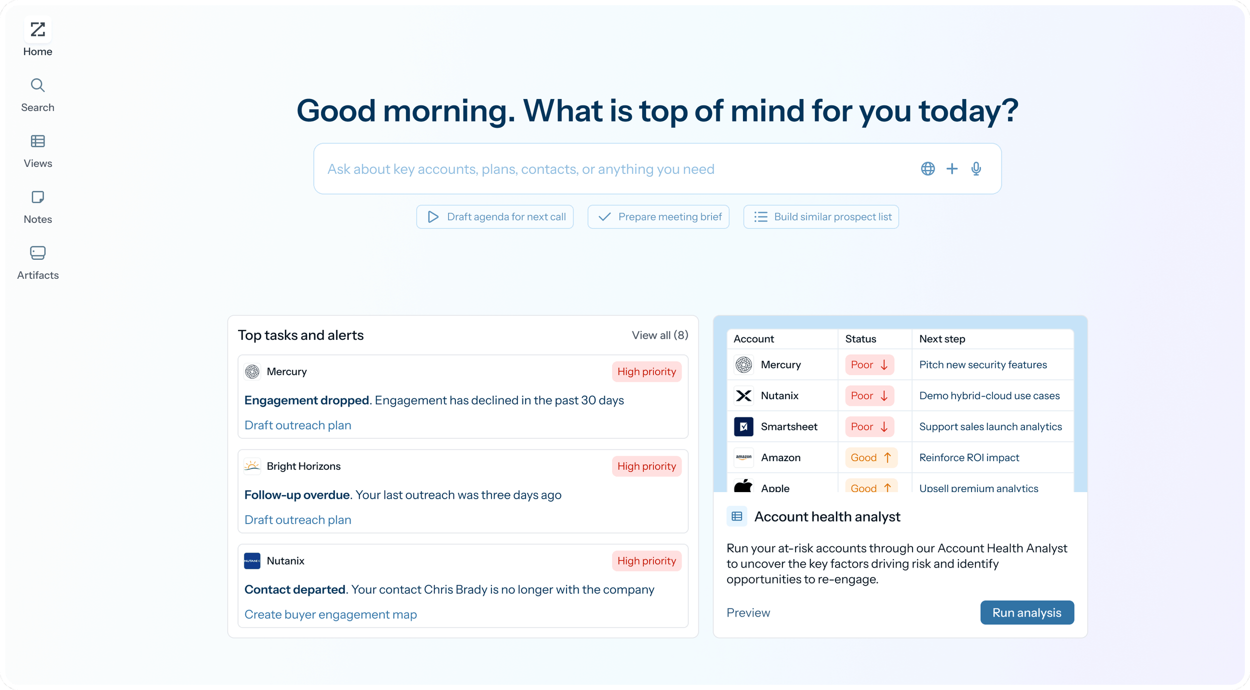 It helps revenue teams prioritize the right accounts, prepare for conversations, and take action without switching systems.
