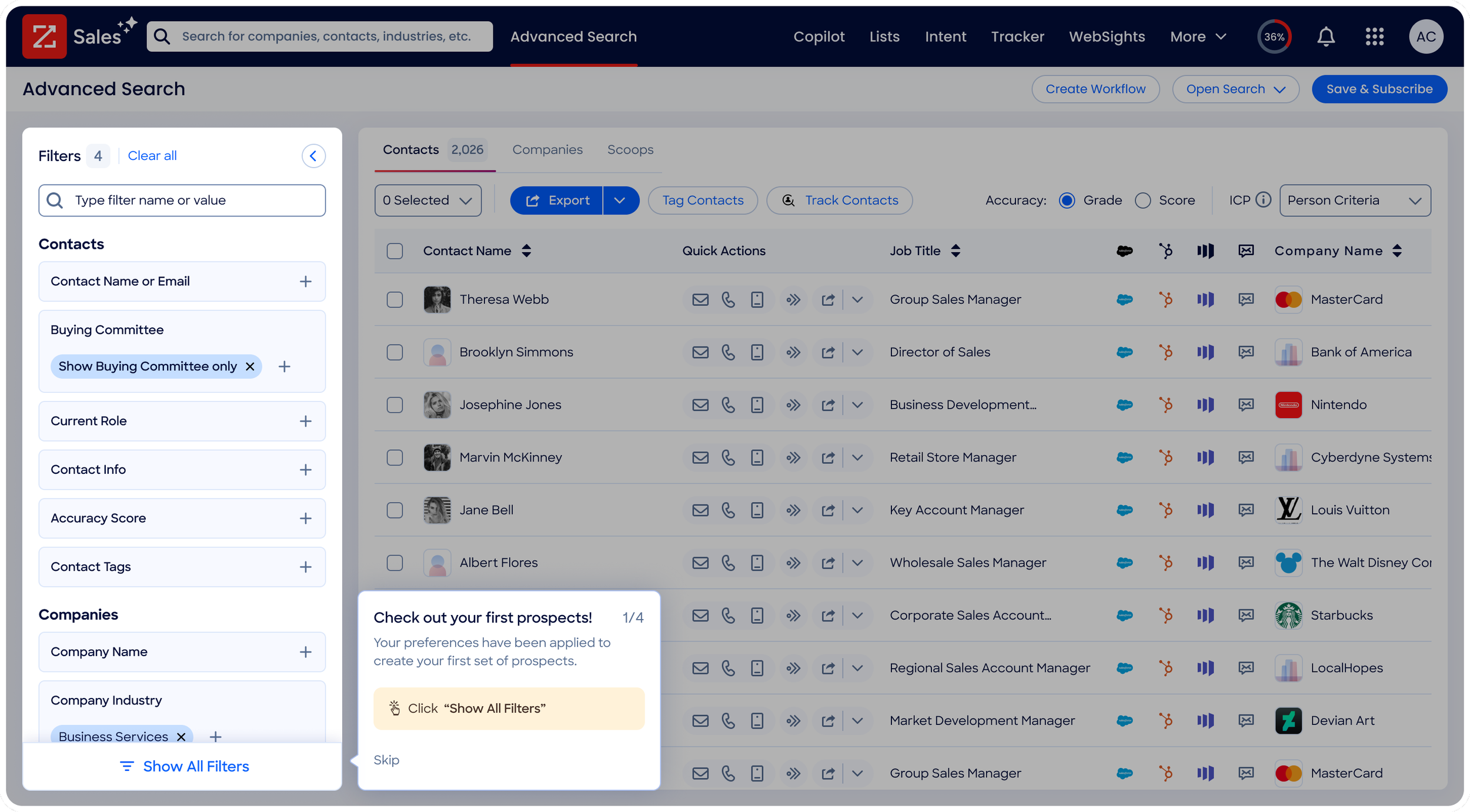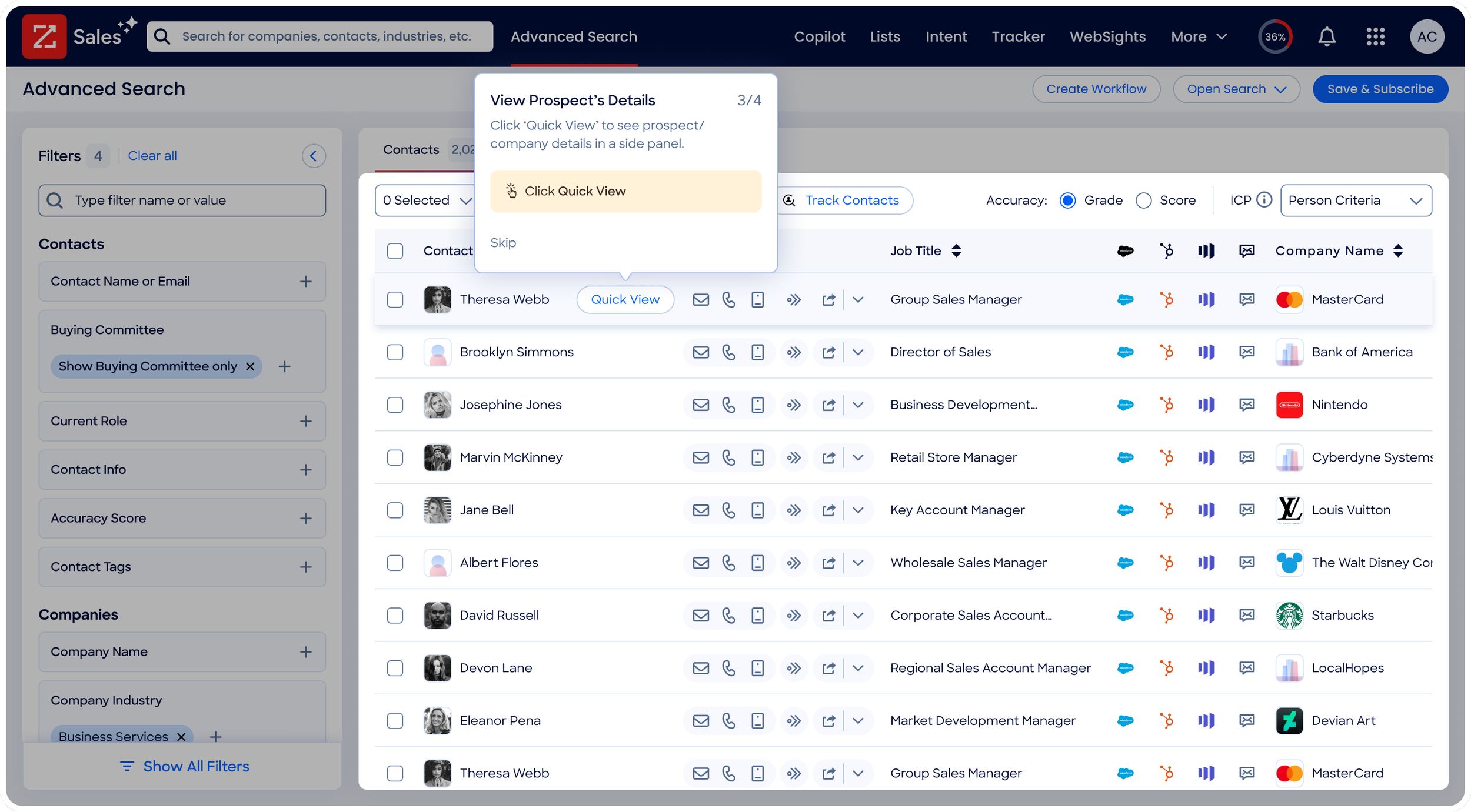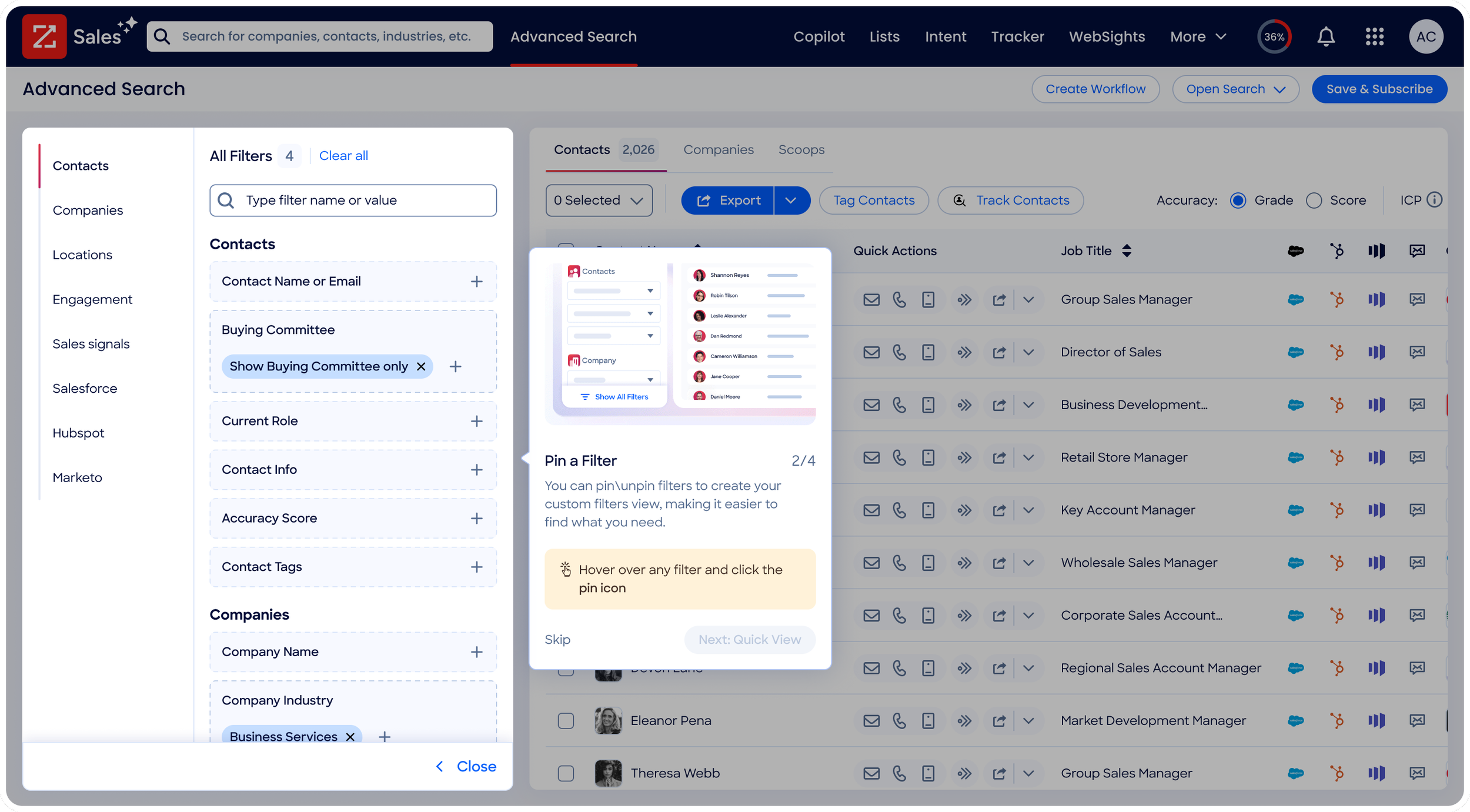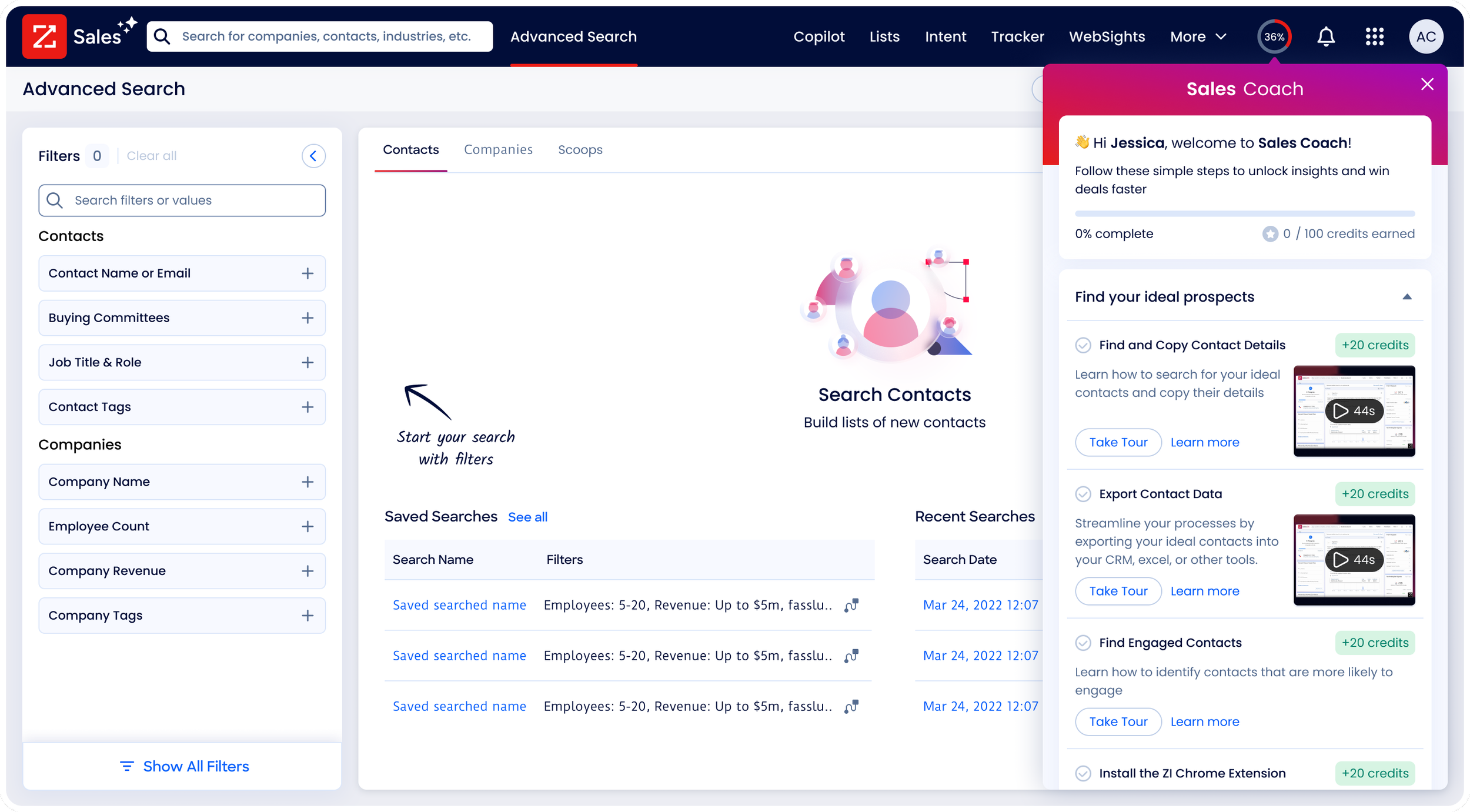 As ZoomInfo continues to release new features, the onboarding system scales with it. Every new feature launch is accompanied by a new tour notification, ensuring users are always aware of what's new and how to use it.